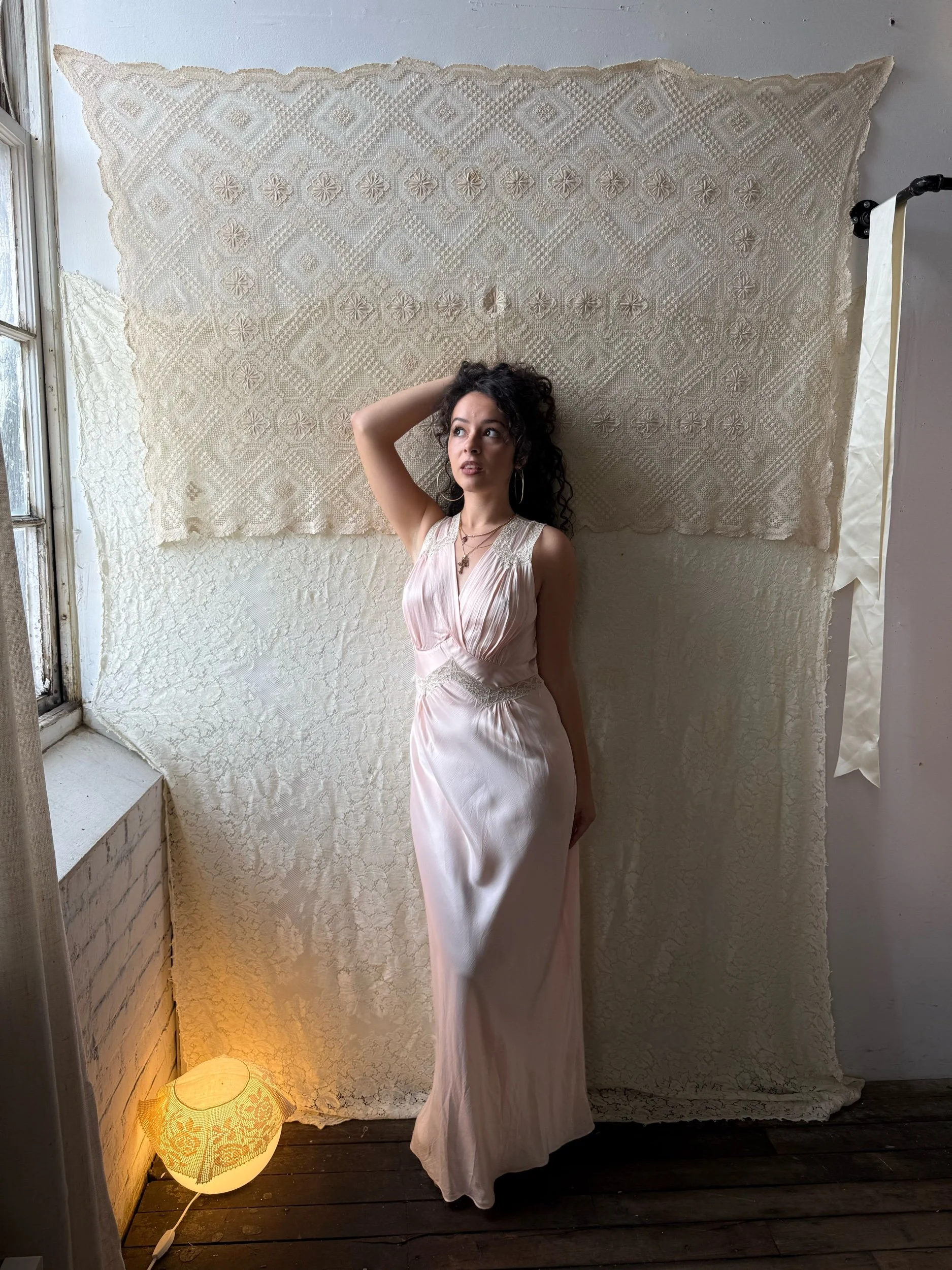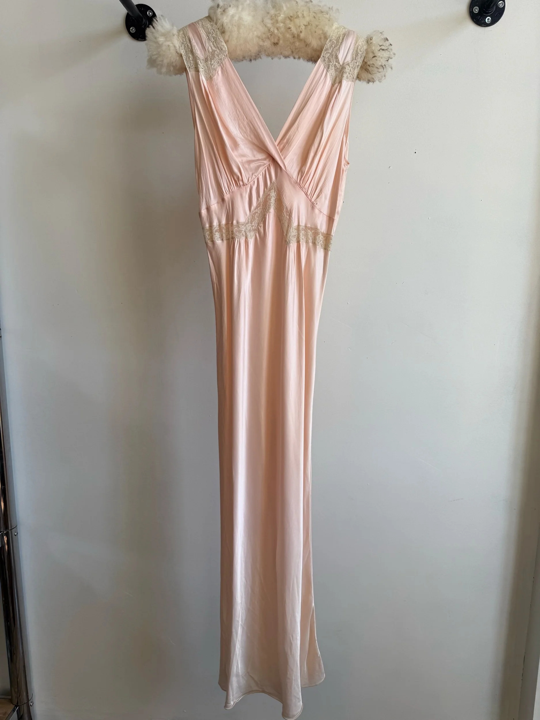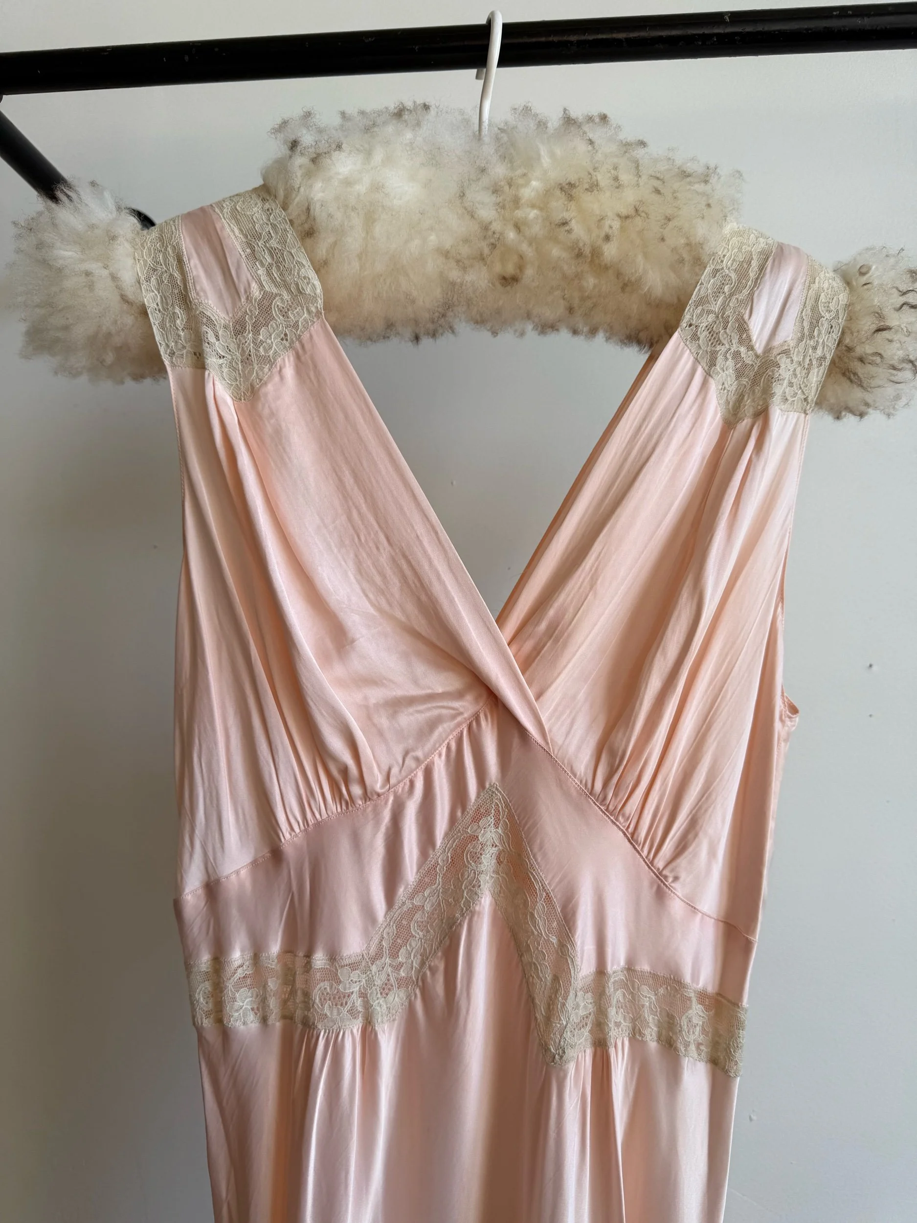 Rayon satin bias cut slip with lace inserts. In amazing condition. Fits medium+